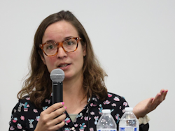 | Martha Pskowski speaks to journalism students in Ciudad Juárez, Mexico, in November 2024. Photo: Courtesy YoCiudadano |