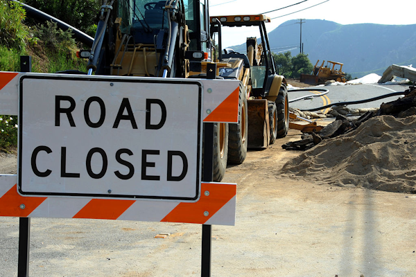 | A Malibu, California, roadway closed after a severe landslide from heavy winter storms in 2010. Photo: FEMA/Adam DuBrowa via Wikimedia Commons (United States government work). |