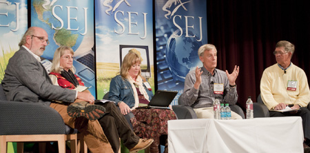 Seattle Post-Intelligencer reporter Andrew Schneider broke the story on the toxic asbestos in Libby in 1999 and started off the SEJ panel by telling the audience that asbestos is still not strictly outlawed in the US.
