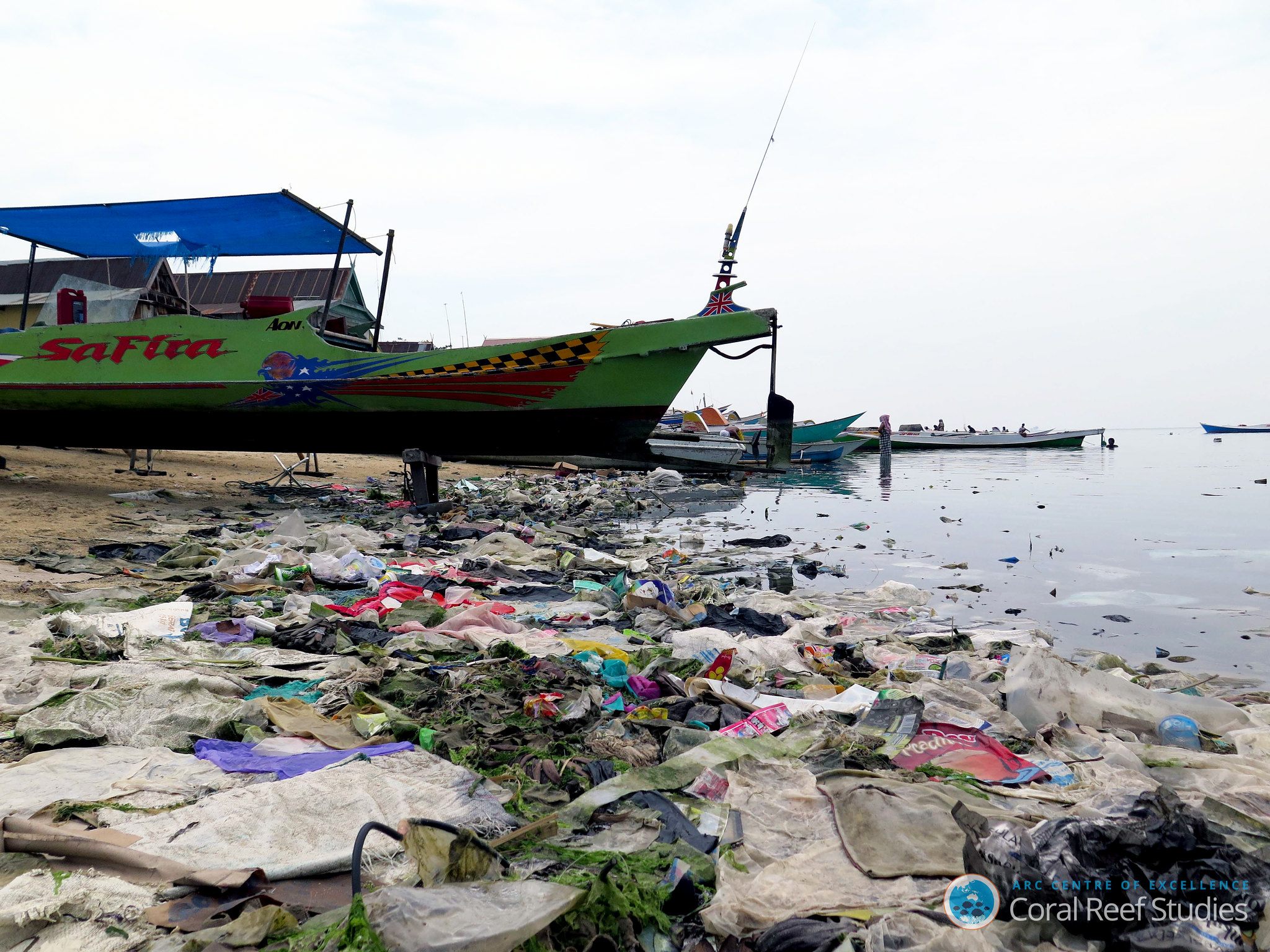 | The incoming Biden administration will face a wide range of environmental treaty considerations, among them a plan to limit ocean pollution from plastics. Above, plastic debris lining a beach in Sulawesi, Indonesia, in 2014. Photo: ARC CoE for Coral Reef Studies/Joleah Lamb, Flickr Creative Commons. Click to enlarge. |