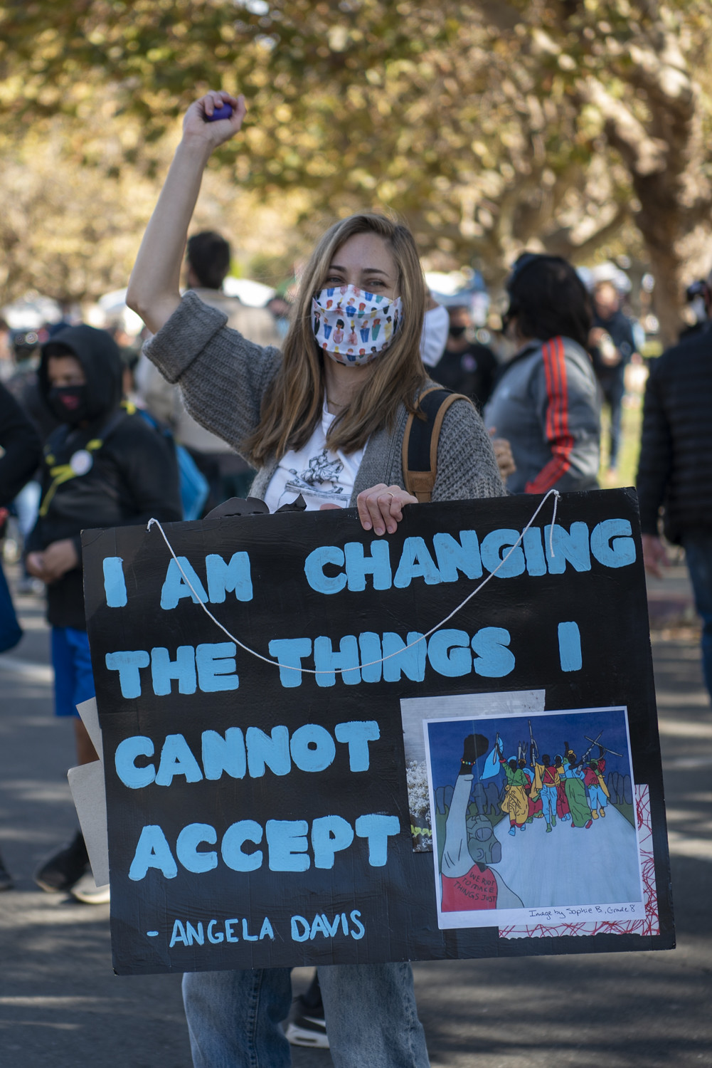 A Biden-Harris supporter celebrating in Oakland, Calif., on Nov. 7. Photo: Daniel Arauz, Flickr Creative Commons. Click to enlarge.