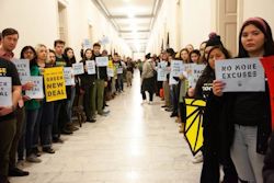 Participants at a Green New Deal-related sit-in outside Rep. Nancy Pelosi’s office on Dec. 10, 2018. Photo: Sunrise Movement. Click to enlarge.