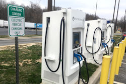 | Electric vehicle charging stations at a highway rest stop in Maryland. Such facilities are considered key to climate-friendly infrastructure policy. Photo: Earth and Main, Flickr Creative Commons. Click to enlarge. |