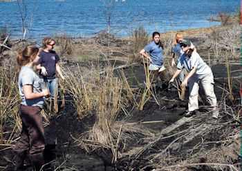 A group of volunteers helping to replant marsh grass on the Bayou Sauvage National Wildlife Refuge east of New Orleans. |