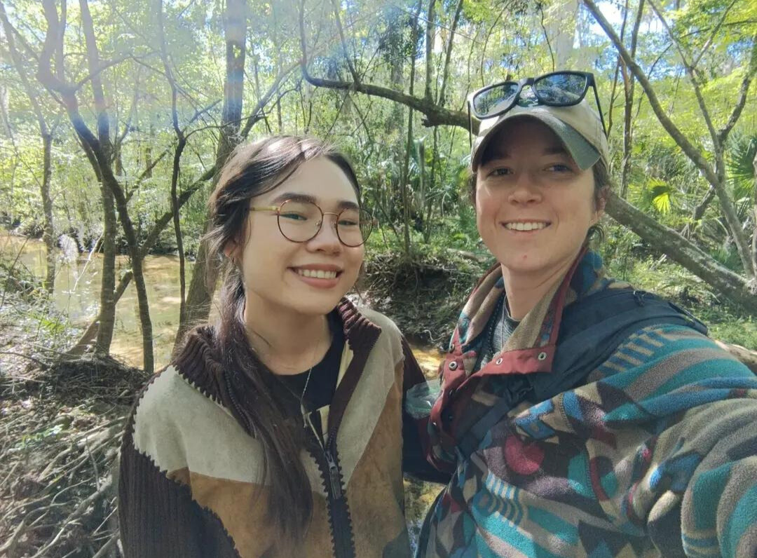 | The author with student journalist Tarryn Nichols, hiking in the woods in Gainesville, Florida, in 2025. Photo: Courtesy CD Davidson-Hiers. |
