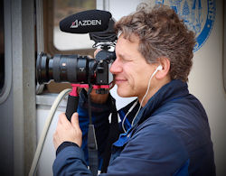 | Abel 'moonlighting' on location making one of his films. Photo courtesy of David Abel. Click to enlarge. |
