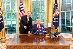 | Rep. Lee Zeldin, at left, with President Donald Trump in the Oval Office during Trump’s first administration in 2018. Photo: Official White House Photo/Shealeah Craighead via Wikimedia Commons (public domain). |