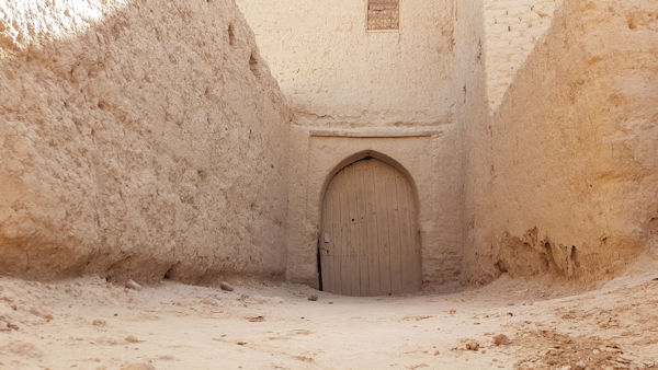 | A doorway in the wall of an abandoned village in the oasis of Es-Sfalat Tafilalet, Morocco. Prolonged drought has driven many people from their homes in this region. Photo: Khalid Bencherif. Click to enlarge. |