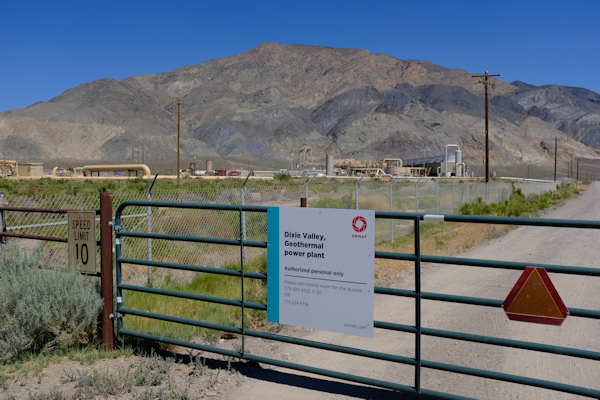 | Sites with potential for producing geothermal energy are rare, hard to find and sometimes controversial. Above, the Dixie Valley geothermal plant at the foot of the Stillwater Range in Nevada. Photo: Jessica McKenzie. |