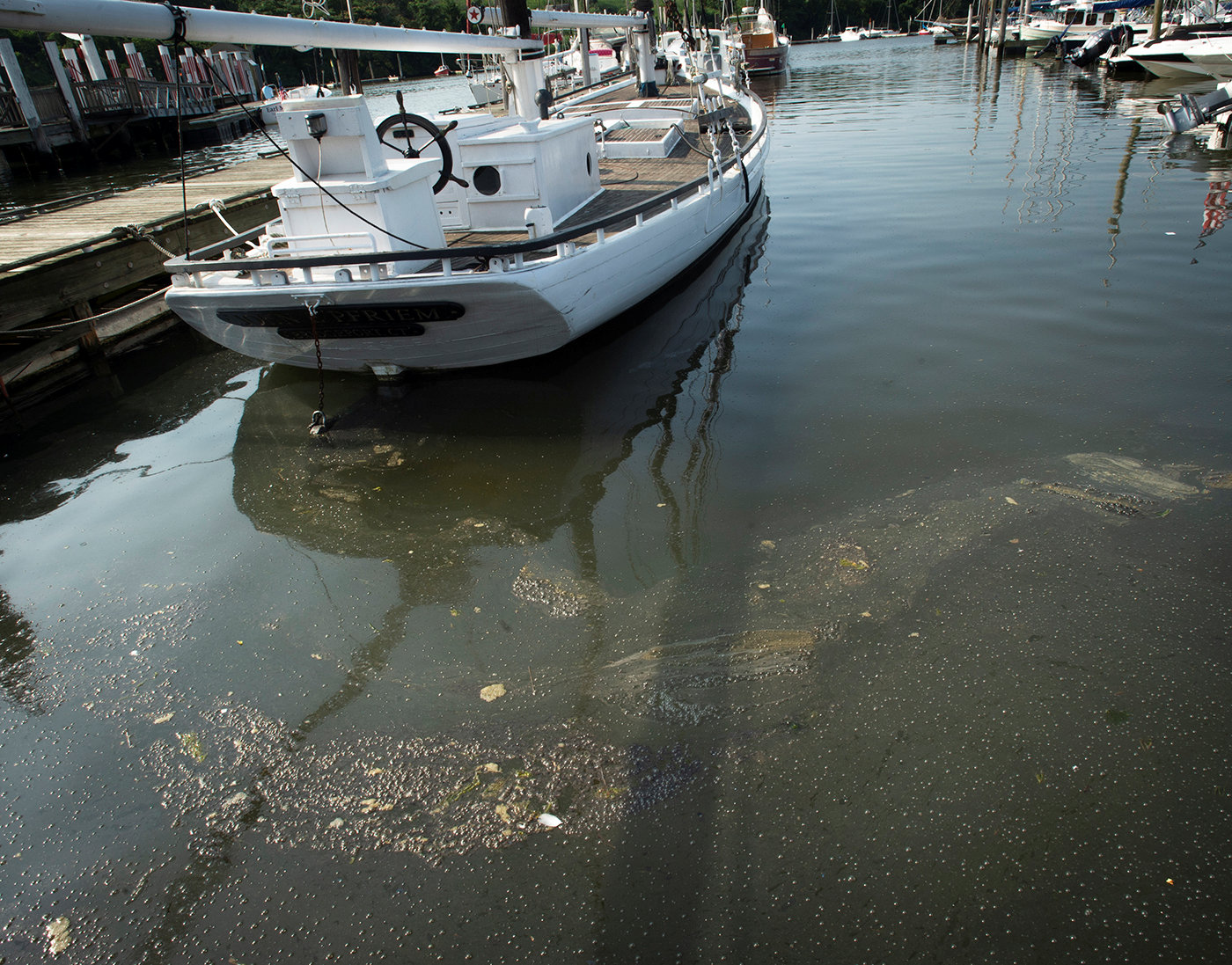 | Water near the outflow pipe in Black Rock Harbor. Photo: Melanie Stengel, Connecticut Health Investigative Team. Click to enlarge. |