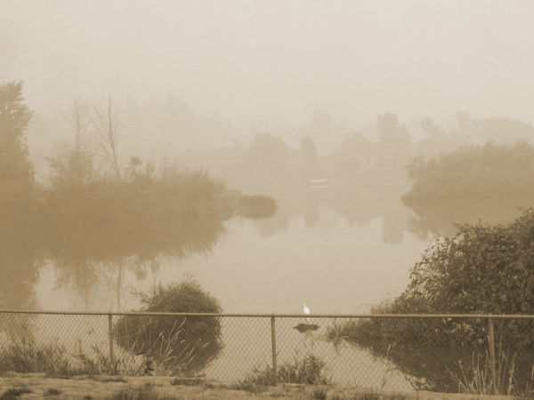 | Wildfire smoke obscuring the view from a residential area in Oregon during an April 2019 fire. Photo: Sandra Strait, Flickr Creative Commons. Click to enlarge. |