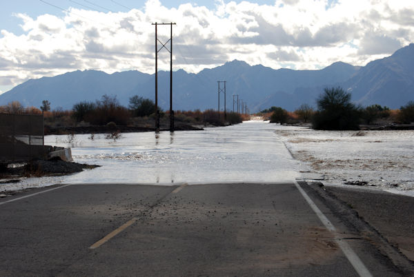 | Above, a road inundated by flood waters from the Salt River in Arizona in 2010. A new database quantifies flood risk and recently estimated that almost a quarter of U.S. roads are vulnerable. Photo: Los Angeles District USACE, Flickr Creative Commons. Click to enlarge. |