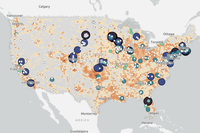 The USGS map approach has the advantage of helping you find PFAS facilities near you at a glance. That’s good. But when you drill down in the map, what you get is these funny hexagons, which tell you how many EPA “PFAS facilities” are in that area. Not that immediately useful (unless you are trying to get a regional view).