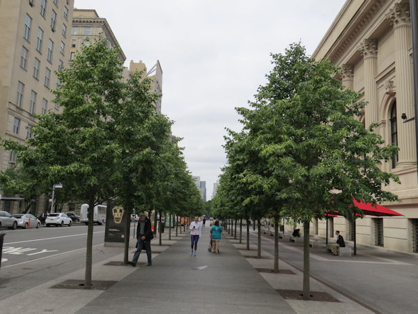 | Above, new trees after planting in 2015 along New York's Fifth Avenue. Photo: DeepRoot, Flickr Creative Commons. Click to enlarge. |