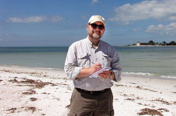 Tampa Bay Times environmental writer Craig Pittman at work on Shell Key, near St. Petersburg, Fla. Covering the beat since 1998, he declares, “I’ve almost got the hang of it.” Photo: Courtesy of Craig Pittman