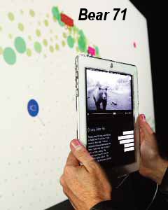 "Bear 71" from Canada featured over 11 years of video clips from trail cameras following a grizzly bear that were embedded in an online grid at a festival installation. PHOTO BY JEAN SEBASTIEN DEFOY, NATIONAL FILM BOARD OF CANADA. |