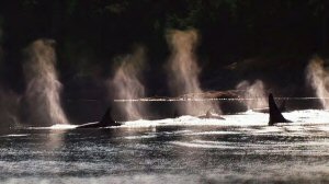 Above, wild orcas spouting at sea. Below, a captive killer whale, from 'Blackfish,' the story of a performing killer whale that killed several people while in captivity. Photos courtesy of Dogwoof Films. |