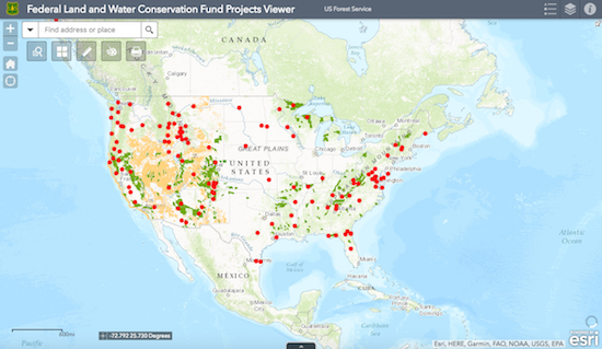 | To find local LWCF stories, reporters can use one of at least two interactive maps that show current projects, such as this one from the U.S. Forest Service. |