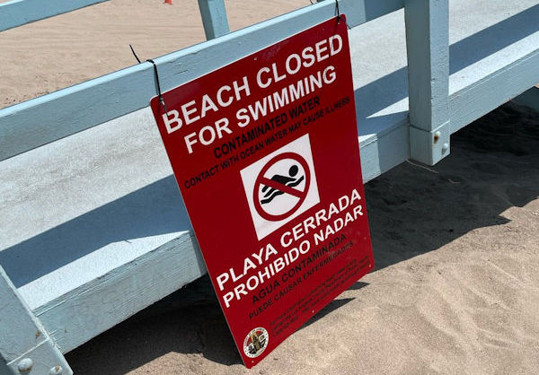 | Beach closures like this one in Los Angeles in July can be an entry point to broader water pollution stories that are often underreported. Photo: Los Angeles County Fire Department, Lifeguard Division. Click to enlarge. |