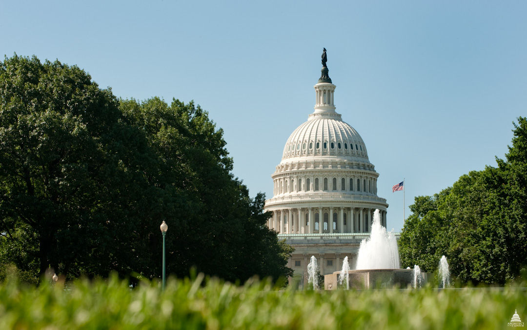 | U.S. Senate leaders have developed a massive aid measure, now awaiting enactment, in response to the coronavirus crisis. Above, the U.S. Capitol Dome and Senate Fountain. Photo: USCapitol/Architect of the Capitol. Click to enlarge. |
