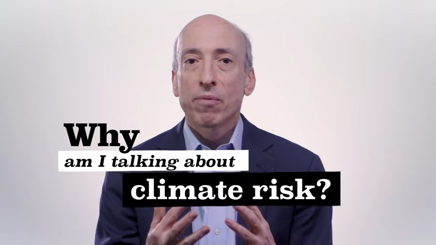 | As part of the Biden administration focus on financial climate risks, the SEC has begun drafting rules around climate risk disclosure. Above, SEC Chair Gary Gensler in a promotional video last year. Image: U.S. SEC, YouTube. Click to enlarge. |